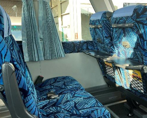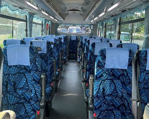 27名乗車可能です。少人数でのグループ旅行に便利です。後部の座席がテーブルを囲むサロンタイプにすることも可能です。また、高速道路の通行料金が大型バスに比べて割安なので、経済的にもお得です。