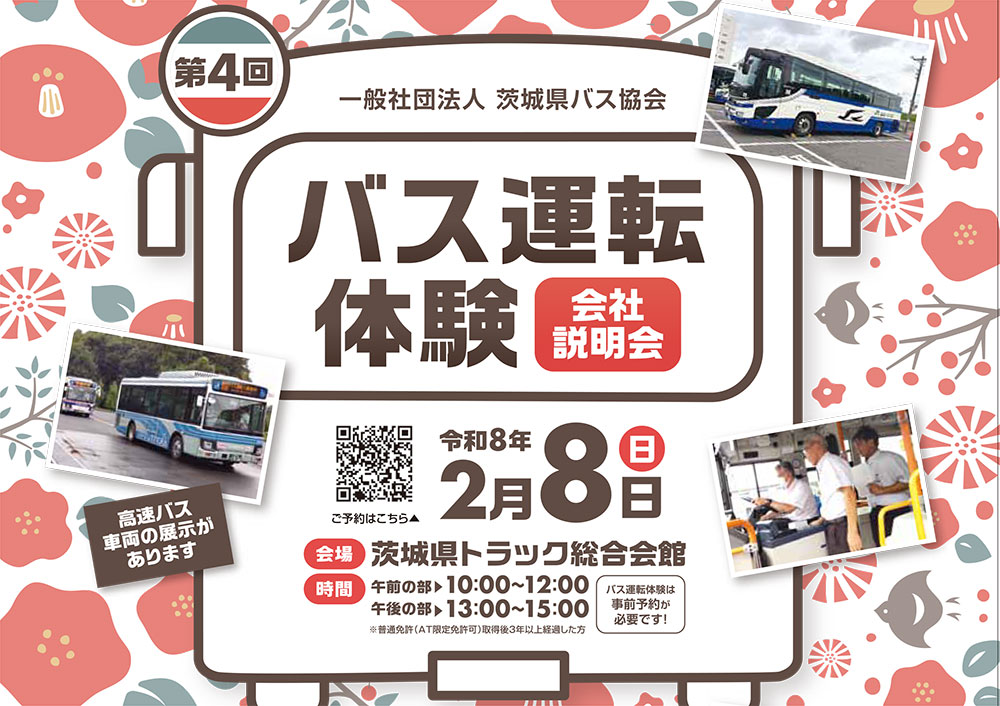 | 2026.2.2 | バス運転体験・会社説明会が2月8日(日)に開催されます |