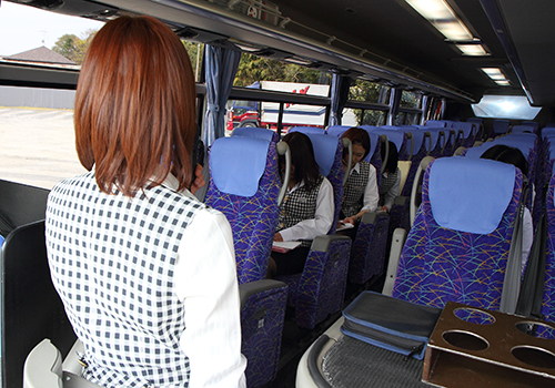 当社では社員バスガイドを自社で養成しております。様々なお客様の様々なニーズに対応し、自社施設や現場実地による研修を重ね日々鍛錬しております。